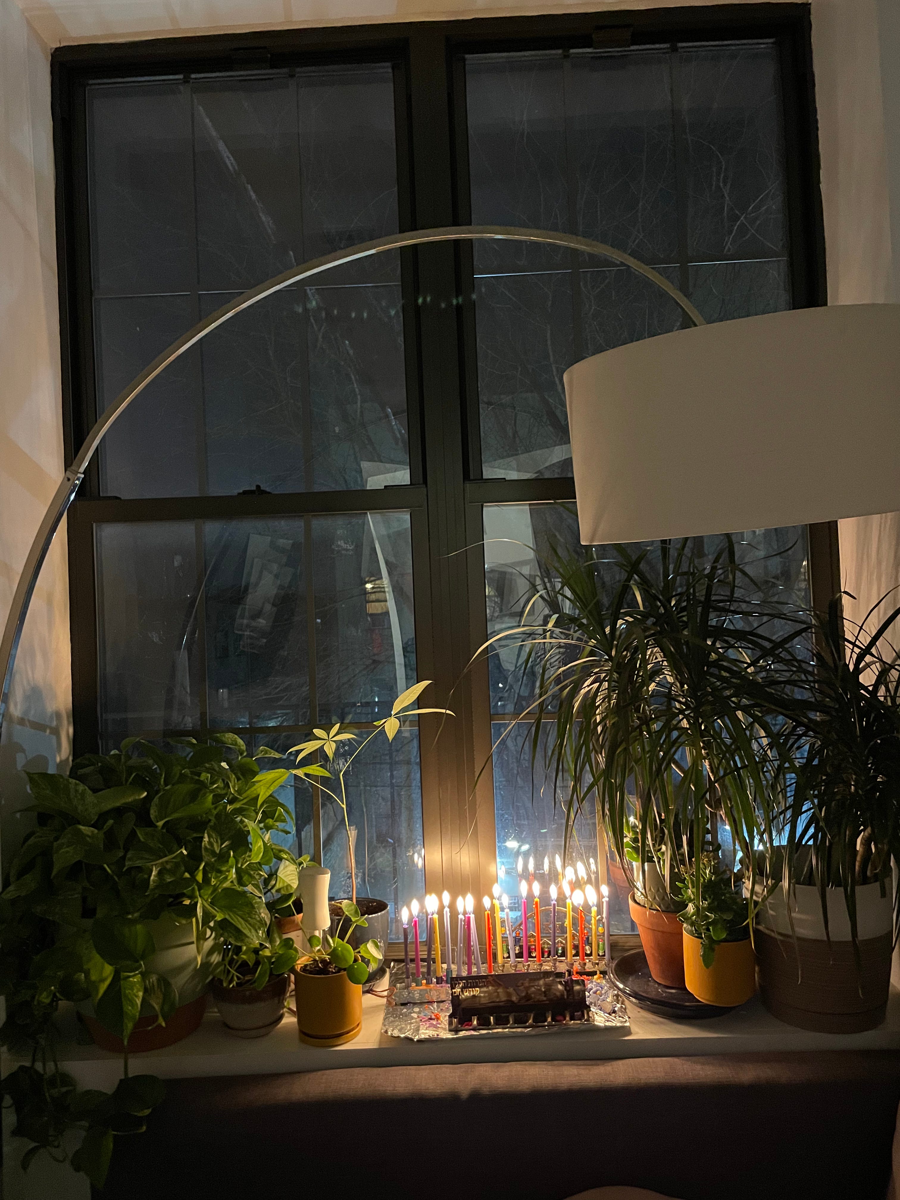 On the third night of Chanukah my roommates were both away. Unlike other Jewish rituals, lighting Chanukah candles does not require any quorum or community. It is a ritual with boundaries sensitive to time and space and mechanics and height— but funnily enough, not a collective. Yet, it felt wrong to light alone— inappropriate almost— in a way I can’t quite quantify or grasp. It felt stunningly lonely, the way a big city can shrink shrink shrink you if you aren’t growing. I said the blessing, whispering the melody aloud. Quickly. I wasn’t sure who was listening.