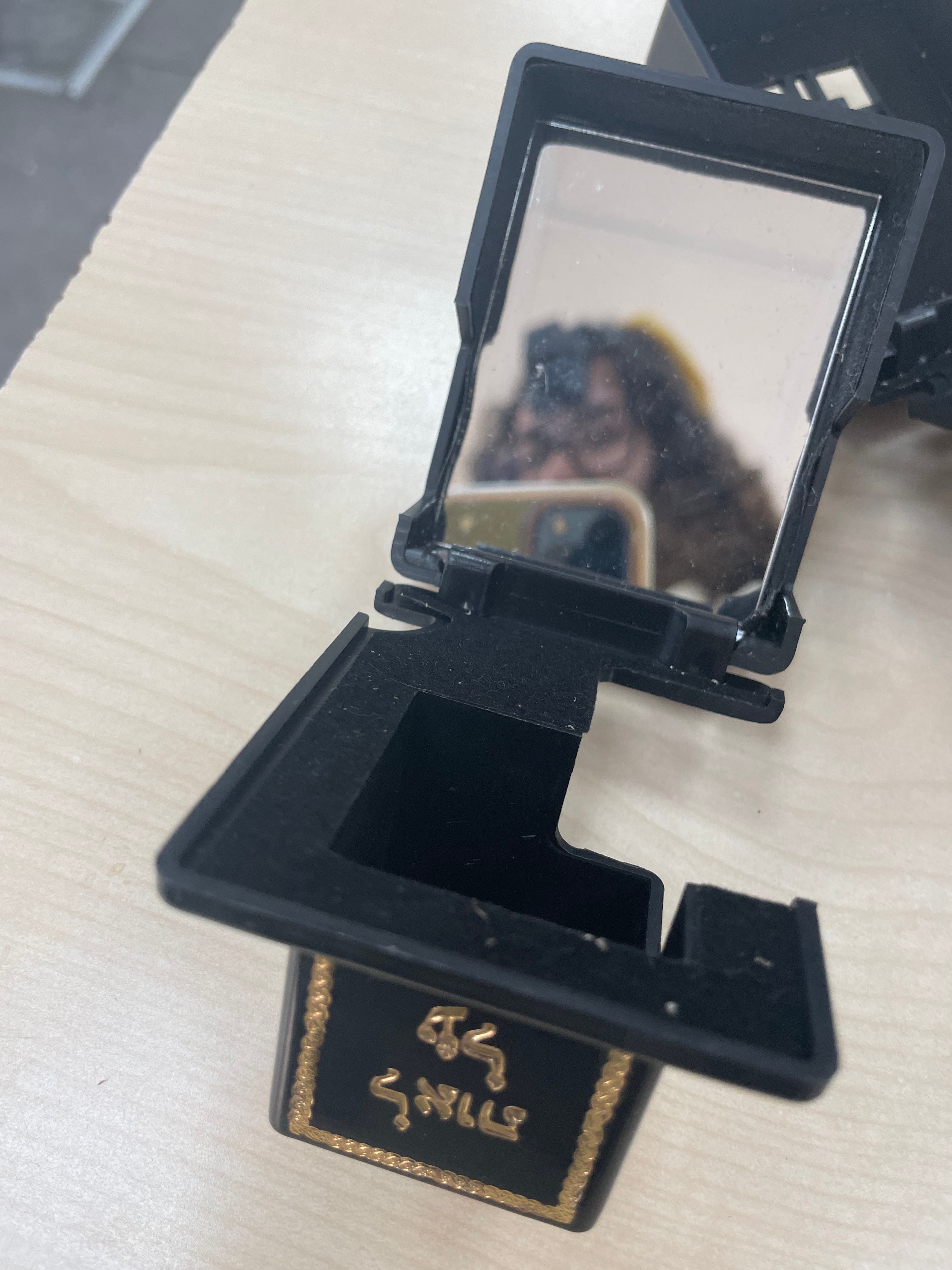 The Torah’s source text for tefillin tells us to wrap the words of God (the Shema) on our hand (hand tefillin) and between our eyes (head tefillin). In order to make sure that the box of the tefillin is *really* in between your eyes, my fancy set has a handy dandy mirror included. I doubt they had those a thousand years ago! How innovative.